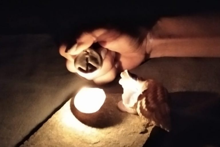 • Por la noche, a la luz de una hoguera, el individuo  se sumergía en un absoluto silencio, relajándose y armonizando el cuerpo con el fuego y la penumbra.  Se respiraba paz y tranquilidad en el ambiente. Meditaba en lo que iba a realizar, en este caso, “darle vida al Didni”.